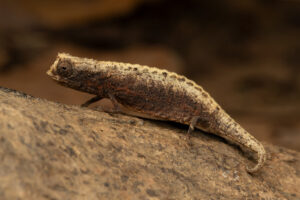 Bei Brookesia superciliaris handelt es sich um eine recht weit verbreitete Erdchamäleonart, deren Habitat sich vom Süden Madagaskars die gesamte Ostküste nach oben bis nach Marojejy und Masoala erstreckt. Sie leben in Laubschichten, auf moosigem Grund und in Büschen und Sträuchern auf Höhen bis 1200 m über NN. Diese Art haben wir bisher in den Nationalparks Andasibe-Mantadia, Masoala und Ranomafana sowie in Vohimana und entlang der Ostküste stets gut gefunden. Tagsüber findet man sie immer mal wieder in Kniehöhe am Wegrand im Regenwald. Einzelne Tiere konnten wir auch schon an mannsdicken Baumstämmen kletternd entdecken. Es scheint eine der wenigen Brookesia-Arten zu sein, die man immer wieder auch kletternd in bis anderthalb Metern Höhe statt nur auf dem Boden entdeckt.