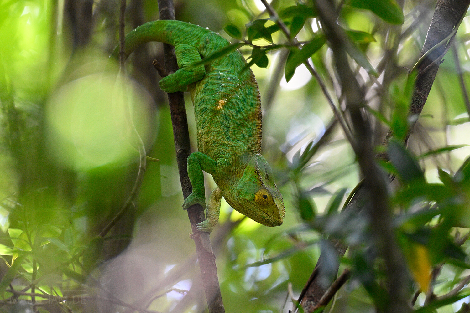 The island St. Marie (in Malagasy Nosy Boraha) is located in the center part of Madagascar’s east coast and belongs to Analanjirofo region. St. Marie is about 50 km long and has a width of two to seven kilometers and approximately 16.000 inhabitants. The capital of the island is Ambodifotatra. Today, a small, modern airport offers daily flights to Antananarivo. Otherwise, you can reach St. Marie easily by boat from Soanierana Ivongo. Especially the white dreamlike beaches of St. Marie are famous, and you can snorkel and dive in many places. That is why the island has been used mainly for tourism for the last decades. Sadly, there is not much intact rainforest left, and it is restricted to a really tiny area in the north of the island. It is often difficult to find Calumma parsonii parsonii here at all nowadays.