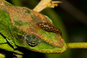 Leeches are common in Madagascar, but they appear to infest chameleons only very rarely. Unfortunately, studies on leeches that infest reptiles are rather scarce. There are some studies on the infestation of turtles and crocodiles by various species of leech. To date, there has been no research whatsoever into the occurrence of leeches on chameleons in Madagascar. We have so far observed a leech on a Calumma amber in the Montagne d’Ambre on one occasion. It was not possible to verify whether this was a coincidence or whether the leech was actually feeding on the chameleon. This therefore represents an exciting area for further research.