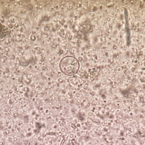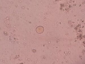 Oocyst of Isospora ssp. in a native faecal smear of a Furcifer pardalis, magnified 800 times