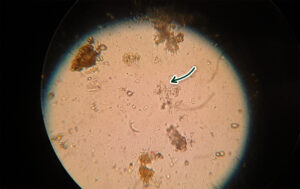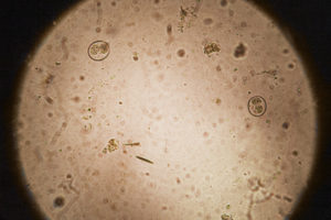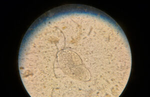 Trichomonas ssp. in native faecal smear, magnified 400 times