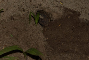 Si une femelle commence à se promener sur le sol et cherche un endroit approprié pour pondre ses œufs, un écran doit être placé devant le terrarium si nécessaire, en fonction de l’emplacement du terrarium. Moins tu dérange la femelle, moins il y aura de problèmes pour pondre. Les femelles jeunes et inexpérimentées, en particulier, effectuent généralement des fouilles d’essai quelques jours avant la ponte proprement dite. Ils creusent des trous mais ne pondent pas d’œufs. Ce comportement est normal et disparaît avec l’augmentation de l’âge et du nombre de grossesses. Lorsque le bon endroit est enfin trouvé – de préférence entre les racines – la femelle creuse un trou profond. Si le trou est suffisamment profond, la femelle se retourne et regarde généralement à travers le trou avec sa tête, tandis qu’elle pond les œufs l’un après l’autre. Après avoir pondu les œufs, la femelle se retourne à nouveau et referme soigneusement le trou creusé. Les feuilles sont également poussées sur le lieu de ponte, de sorte qu’il n’est plus possible de voir où se trouvent les œufs par la suite. Ce comportement fait partie du processus de ponte, la femelle ne doit pas être dérangée. Si tu as regardé attentivement dans le terrarium entre-temps, tu save au mieux déjà où regarder plus tard.